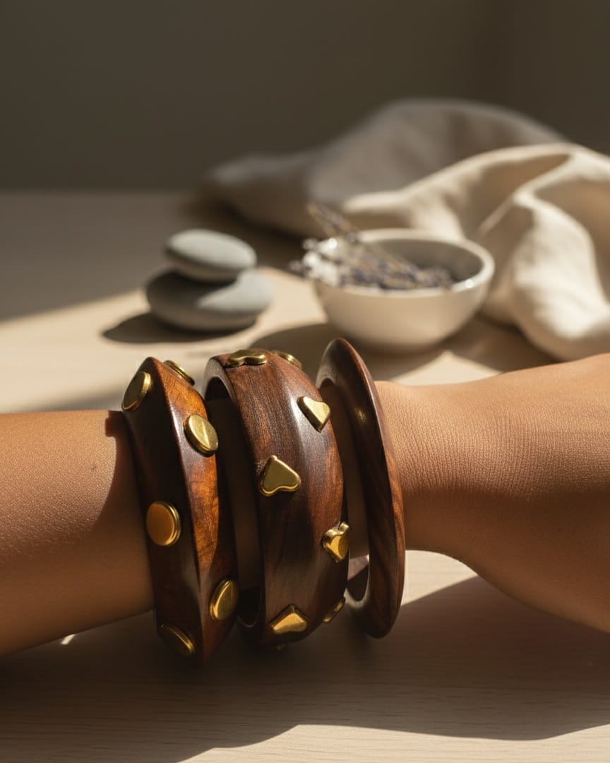 Gold-Plated Square-round Shaped wooden bangle